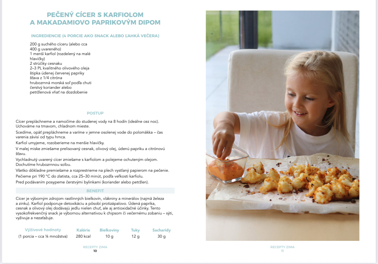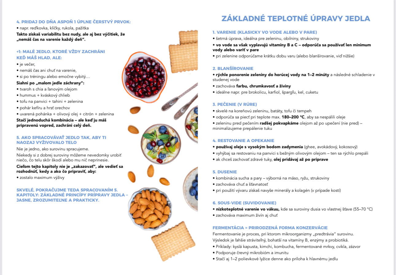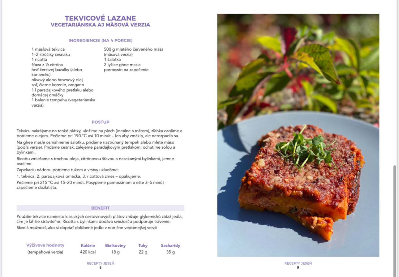 Celkovo v nej nájdeš viac ako 200 originálnych receptov, ktoré pokrývajú všetky chuťové preferencie – od mäsových, cez bezmäsité kombinácie, až po zeleninové, ovocné a ľahké očistné jedlá. Bez nutnosti striktných výživových smerov – len vedomý výber a rovnováha.