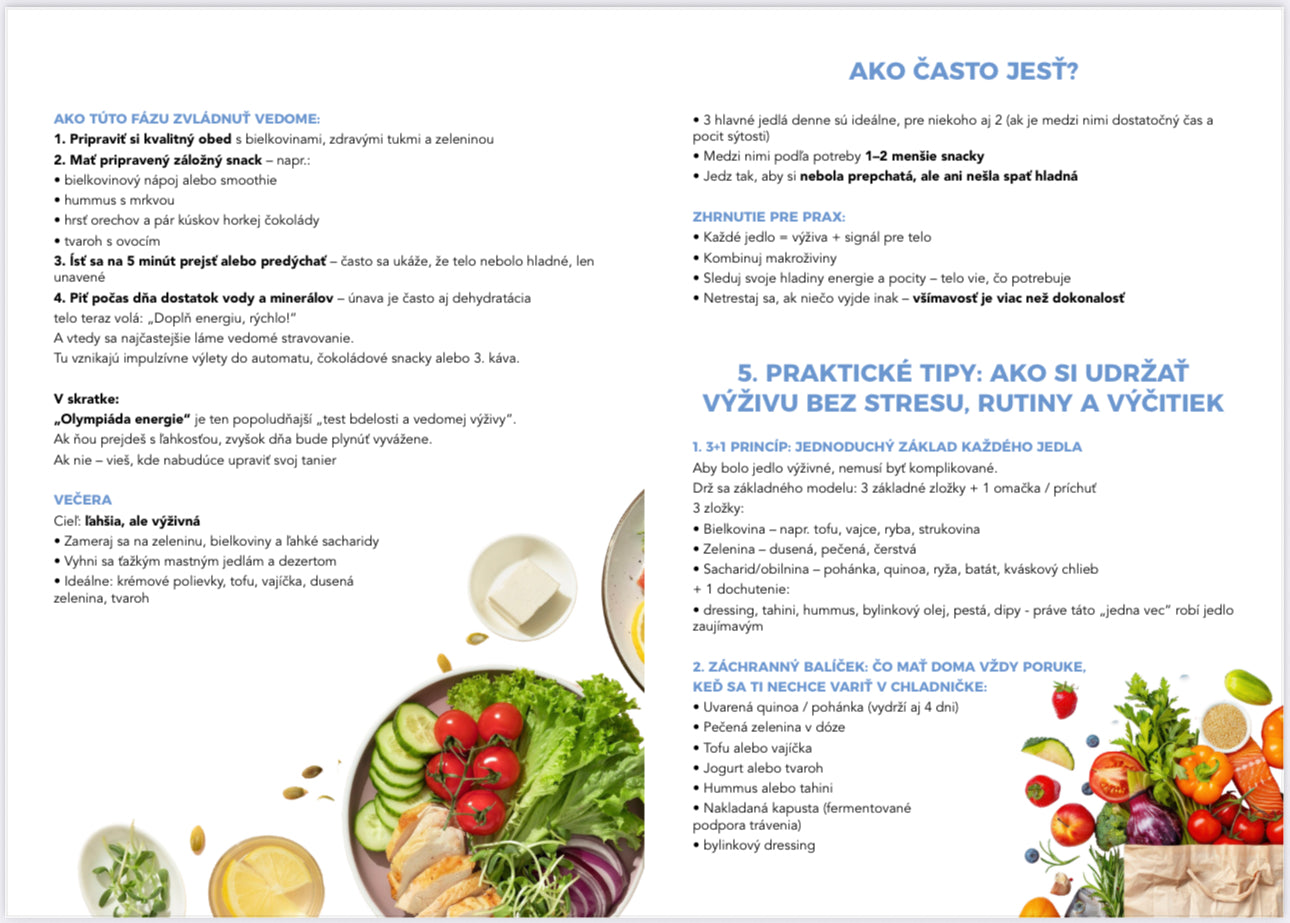 - Základy výživy, pitného režimu a fungovania tela z vedomého pohľadu.